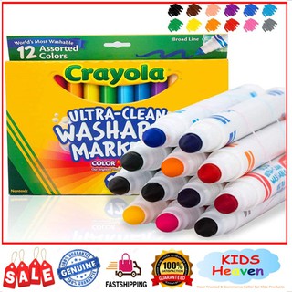 Crayola is dedicated to helping kids of all ages unleash the power of imagination in colorful ways. Each box includes 12 ultra clean washable broad line markers in assorted colors and peggable box. Please understand before buying that the markers are new but will not be in their original packaging.